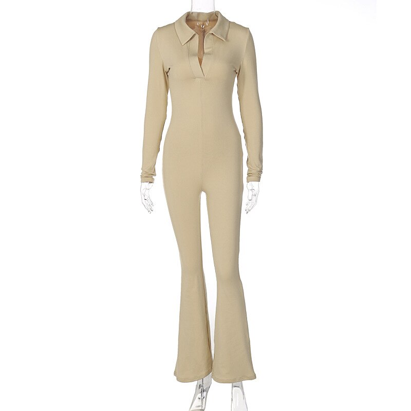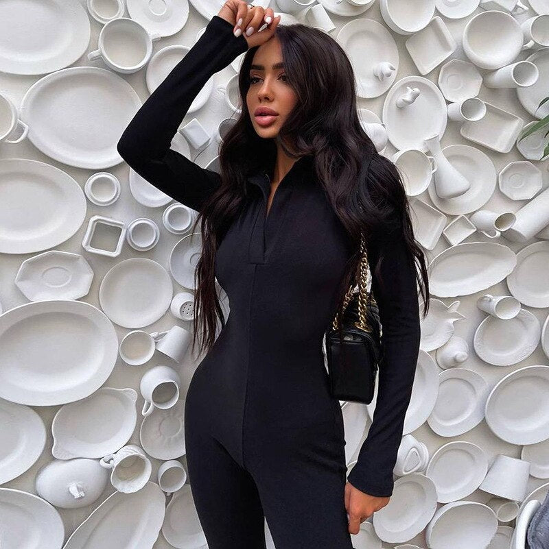 Elevate your style with the Long Sleeve V-Neck Skinny Jumpsuit. This versatile outfit seamlessly combines fashion and comfort, making it perfect for both fitness parties and streetwear occasions during the autumn season. The long sleeves and V-neck design add a touch of sophistication, while the skinny fit and flare pants provide a trendy silhouette that flatters your figure. This jumpsuit is your go-to choice for effortlessly chic streetwear outfits that exude confidence and style. Whether you're hitting the town or attending a party, this outfit is the epitome of fashion-forward versatility. Don't miss out on owning this essential piece that brings together comfort and contemporary streetwear aesthetics for the perfect autumn look.